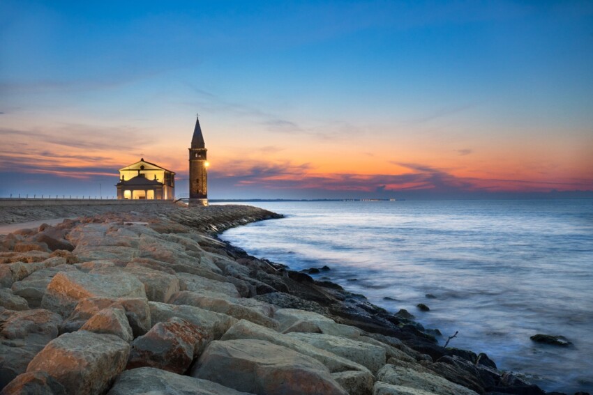 The landmark building of Caorle is the Church of the Madonna dell’Angelo: what makes it special is its location in a very evocative spot, on the small promontory close to the historic centre. Seen from afar, it seems almost suspended over the sea.