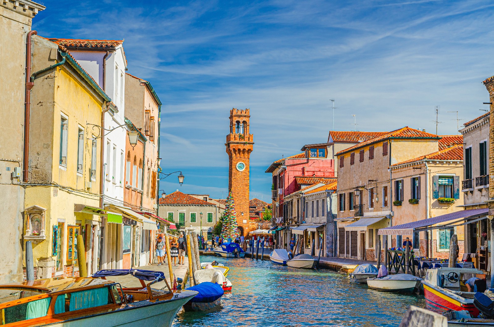It is the largest island in the lagoon (if you exclude the centre of Venice), itself made up of seven islands connected by bridges and crossed by a main canal (called, needless to say, Canal Grande) overlooked by low houses with colourful facades and elegant palazzi. You get around on foot, and even here you can get lost among the campi and campielli, up and down the bridges, hunting for the perfect view for a breathtaking photograph or a romantic sunset over the lagoon.
